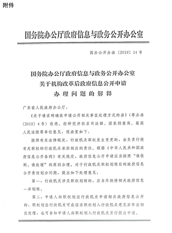 附件:国务院办公厅政府信息与政务公开办公室关于机构改革后世界杯球赛时间表申请办理问题的解释