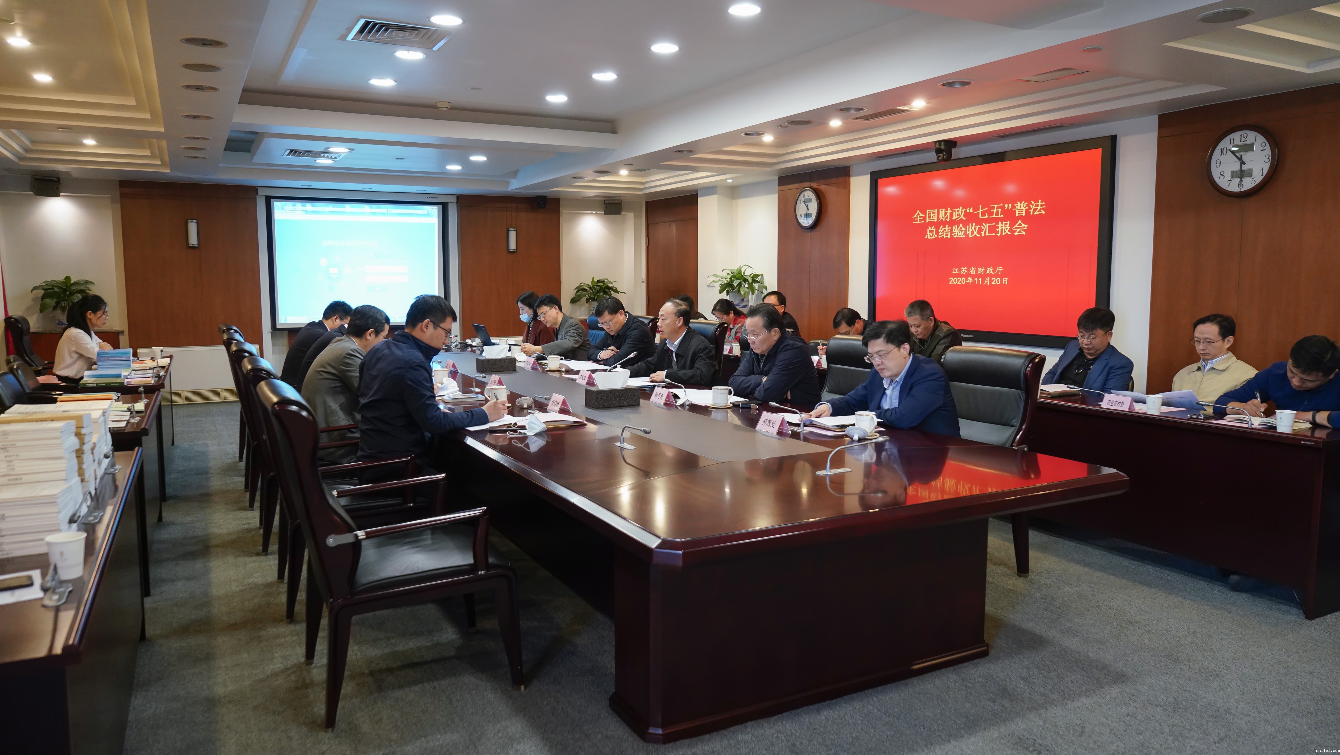 近日,财政部条法司顾天舒二级巡视员一行3人来我厅开展“七五”普法总结验收工作。沈益锋副厅长出席汇报会,全省财政依法行政领导小组成员单位主要负责人参会。