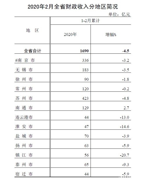 1-2月,全省一般公共预算支出完成1974亿元,下降1.1%。