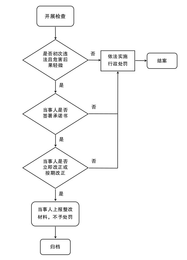 (二)严格规范适用程序。发现违法行为线索后,相关执法机构应当按照有关规定开展检查、调查。符合免罚条件的,由执法机构对当事人进行批评教育,宣传相关法律规定并提出具体整改要求。当事人对相关情况确认无误后,自愿签署整改承诺书。执法机构应当在合理时间内核查整改情况,当事人未在承诺期限内整改到位并提交整改情况说明等证明材料的,根据核查情况依法实施行政处罚或依法采取必要措施。