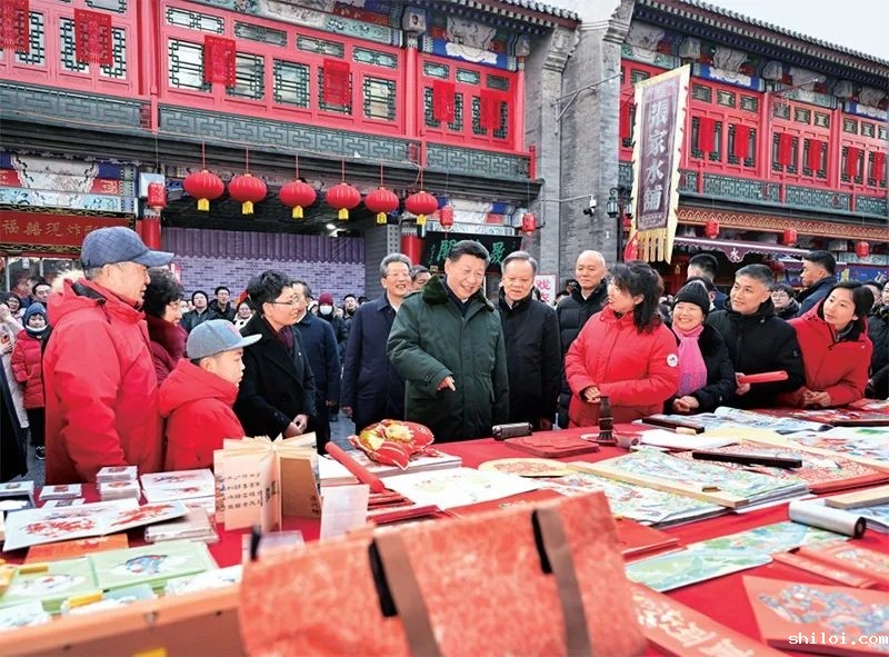 2024年2月1日至2日,中共中央总书记、国家主席、中央军委主席习近平来到天津,看望慰问基层干部群众。这是1日下午,习近平在天津古文化街考察时,同店铺员工和现场群众互动交流。新华社记者 谢环驰/摄