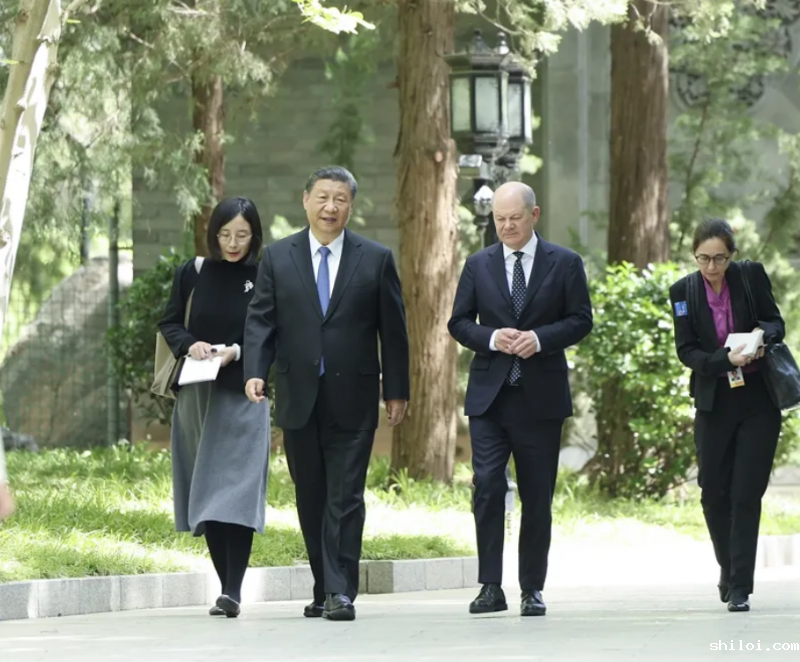 会见后,习近平同朔尔茨一起散步并共进午餐,就广泛议题进一步深入交流。