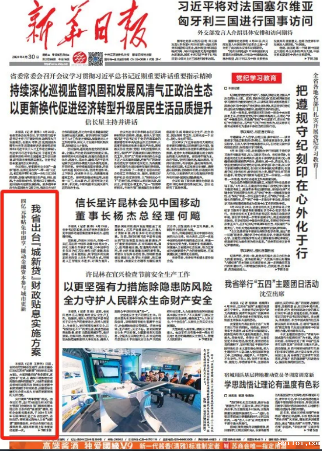 日前,省财政厅会同省住建厅、省委金融办印发《江苏省“城新贷”财政贴息实施方案》。方案明确采取“免申即享、直达快享”方式,在确保不增加地方政府隐性债务的前提下,对城市更新重点领域和建筑市政领域设备更新中长期贷款给予财政贴息,鼓励引导金融和社会资本加大对城市更新领域的支持力度。