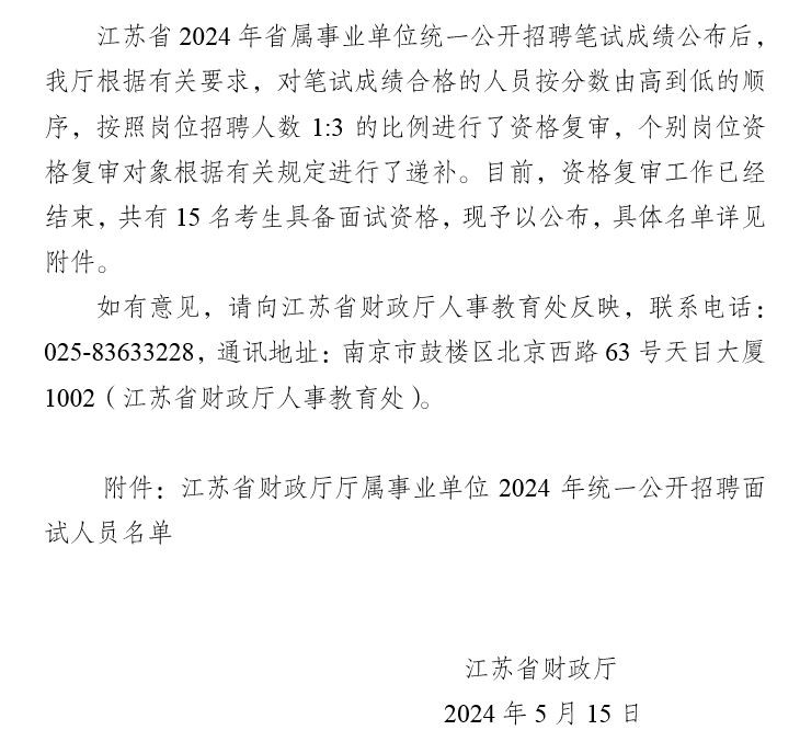 世界杯视频直播厅属事业单位2024年统一公开招聘面试人员名单公告