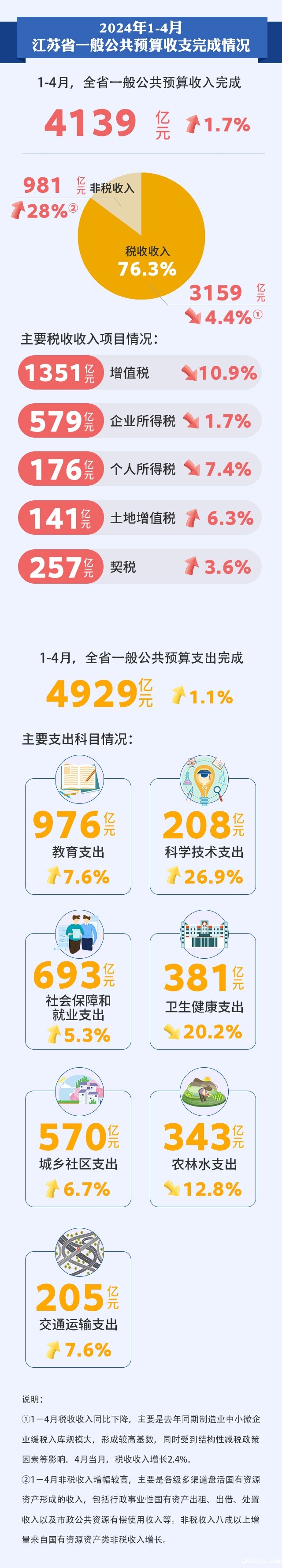 2024年1-4月江苏省一般公共预算收支完成情况