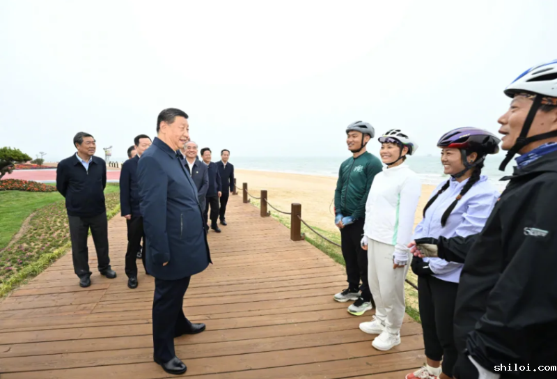 22日下午,习近平总书记来到山东日照市阳光海岸绿道,实地察看修复治理后的海岸线生态环境,并同正在海边休闲锻炼的市民游客亲切交流。习近平强调,老百姓的幸福生活是干出来的。我们要靠实干奋斗,实现中华民族伟大复兴,使人民群众生活越来越好。