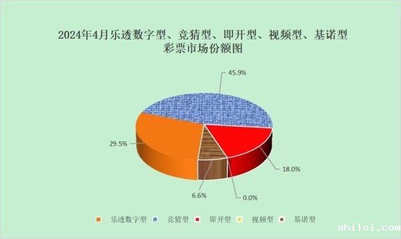 4月份,乐透数字型彩票销售163.44亿元,同比增加8.50亿元,增长5.5%;竞猜型彩票销售254.60亿元,同比增加22.49亿元,增长9.7%;即开型彩票销售99.81亿元,同比增加10.45亿元,增长11.7%;基诺型彩票销售36.72亿元,同比增加9.87亿元,增长36.8%。4月份,乐透数字型、竞猜型、即开型、基诺型彩票销售量分别占彩票销售总量的29.5%、45.9%、18.0%、6.6%。视频型彩票销售0.0009亿元,同比减少0.0014亿元。