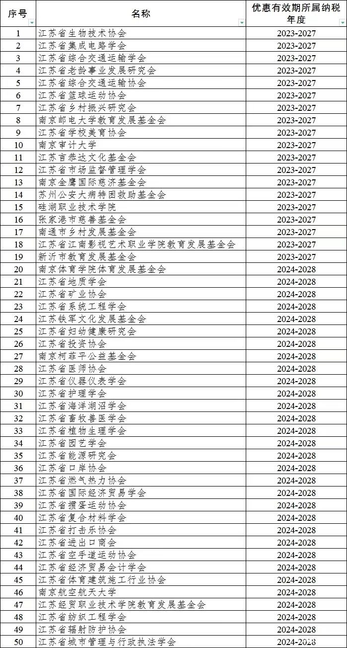 江苏省2024年第一批获得免税资格的省属非营利组织名单